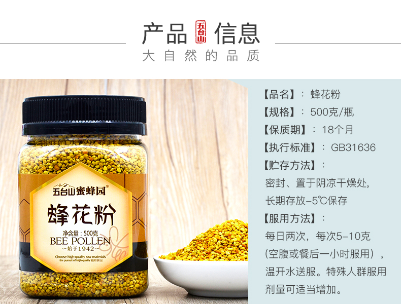 五臺山蜜蜂園蜂花粉500g